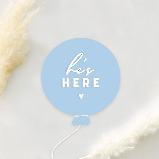 Announce the arrival of your little bundle of joy with our beautifully crafted "He's Here" acrylic balloon-shaped signs. These signs are perfect for creating memorable and heartwarming newborn photo announcements, ensuring your special moments are captured in a way that will be cherished forever.