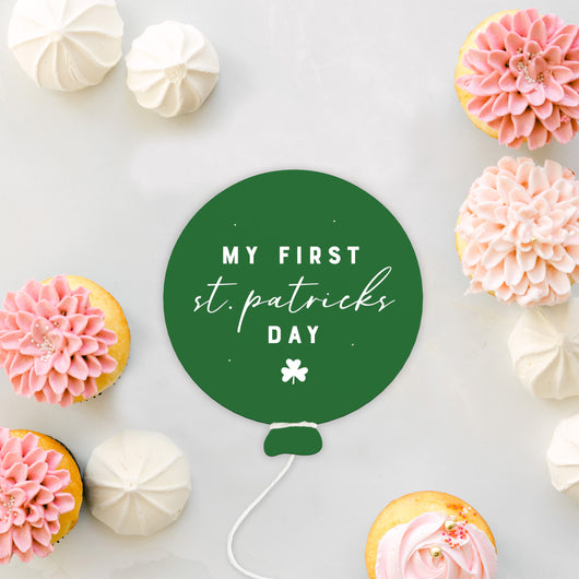Perfect for milestone photoshoots, this balloon-shaped design with twine detail adds a festive touch to baby’s first holiday celebration. Pair it with leprechaun hats, shamrocks, pots of gold, or other St. Patrick’s Day props to create adorable and unforgettable photos. The elegant typography and minimalist shamrock graphic bring a touch of sophistication, making it ideal for both casual and themed celebrations.